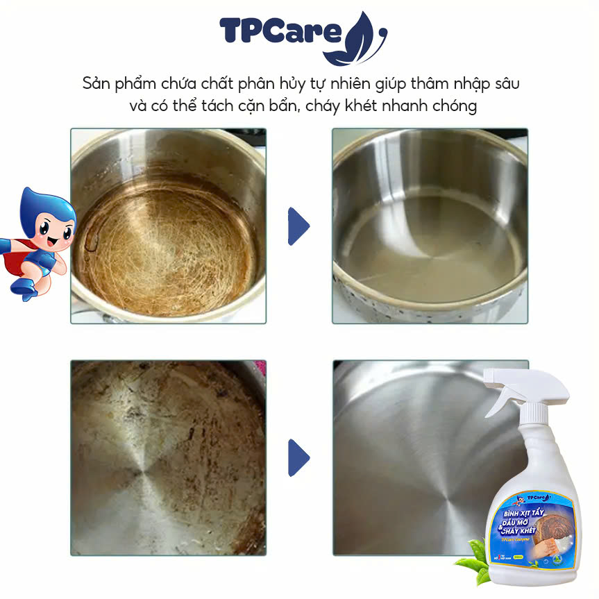 Để giải quyết triệt để nỗi lo này, TPCare mang đến cho bạn một giải pháp công nghệ mới: Nước tẩy dầu mỡ cháy khét TPCare