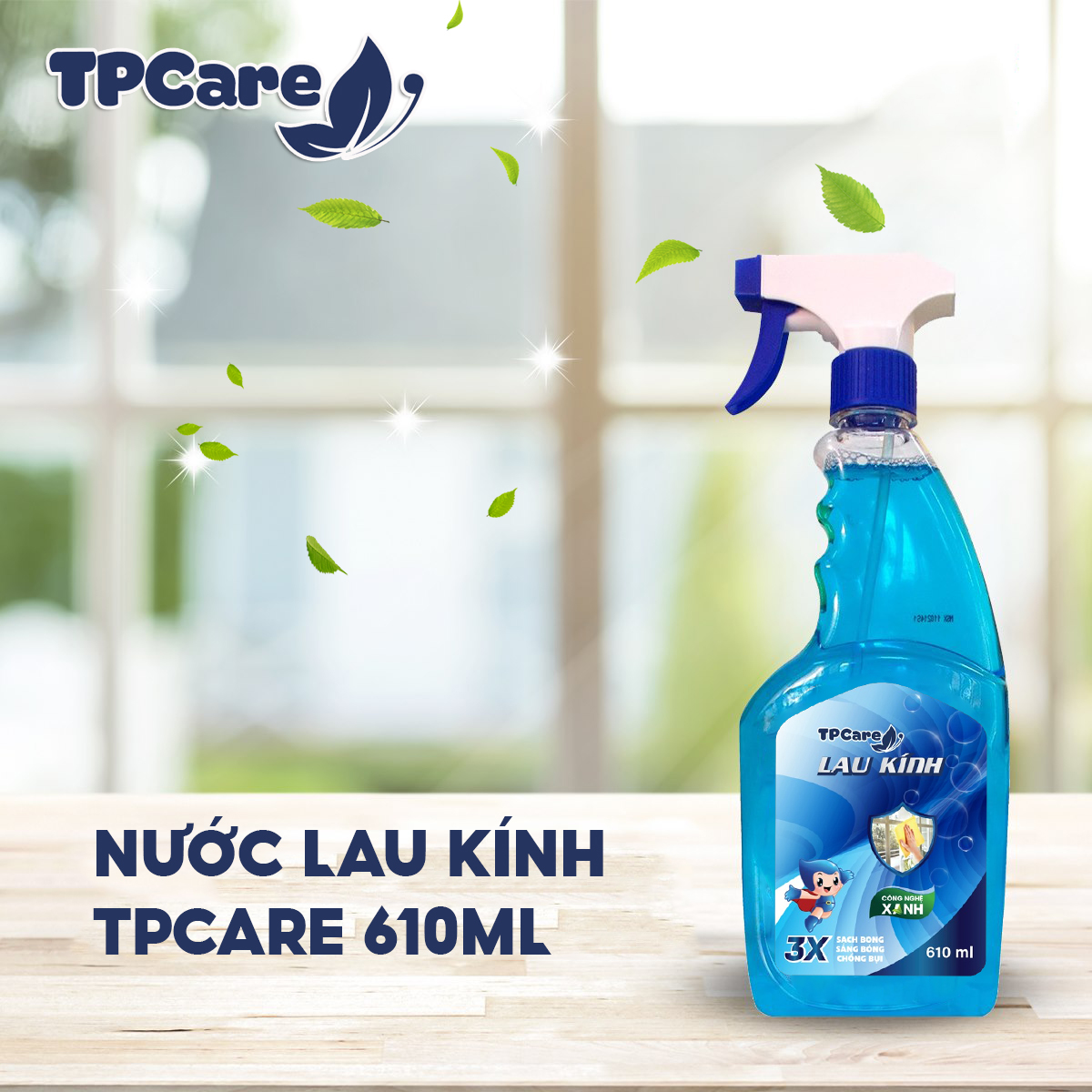 Nước lau kính TPCare: giúp bề mặt kính, gương, cửa sổ luôn sáng trong, không để lại vệt mờ.