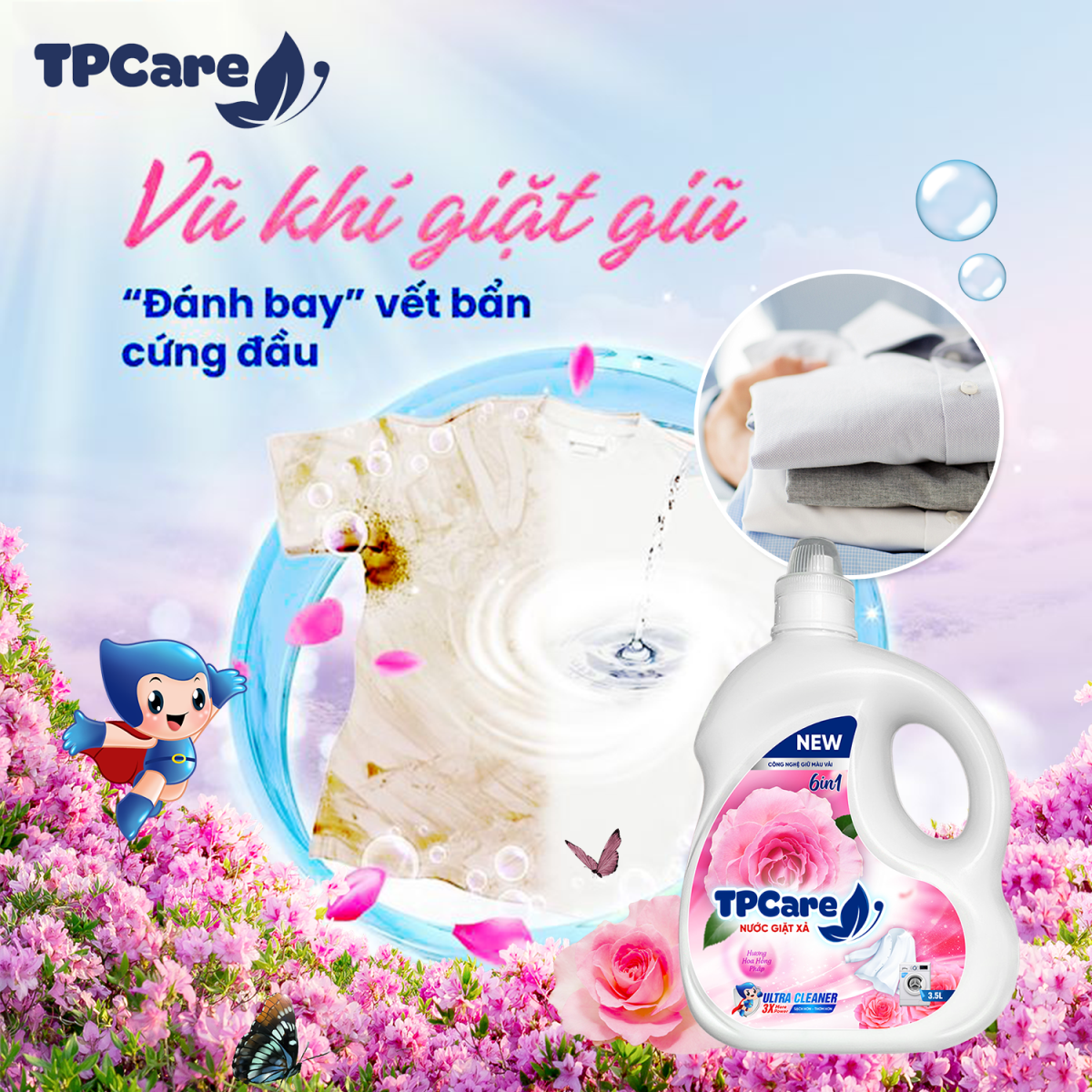 Trong khi đó, các sản phẩm giặt tẩy chuyên dụng như nước giặt xả TPCare có thể mang lại hiệu quả làm sạch nhanh và mạnh hơn, đặc biệt đối với các vết bẩn cứng đầu, đồng thời giúp quần áo giữ được hương thơm dễ chịu sau khi giặt.