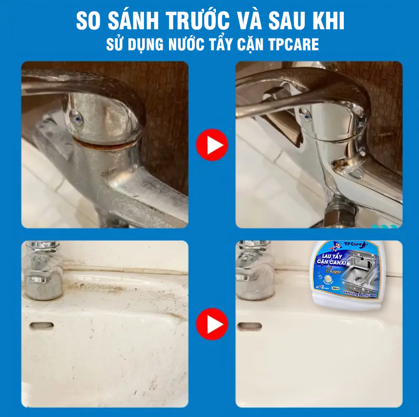 Trước thực trạng cặn canxi bám dày, khó xử lý trong không gian phòng tắm và khu vực sử dụng nước thường xuyên, TPCare đã nghiên cứu và cho ra mắt dòng nước tẩy cặn canxi chuyên dụng, được phát triển riêng dựa trên đặc thù nguồn nước sinh hoạt tại Việt Nam.