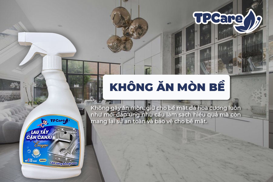 Xịt trực tiếp nước tẩy rửa cặn Canxi Enzyme TPCare lên các khu vực bám bẩn và để dung dịch thẩm thấu trong khoảng 3 – 5 phút, tùy theo mức độ cặn canxi. Khi vết bẩn đã mềm, dùng khăn mềm hoặc miếng bọt biển lau sạch toàn bộ bề mặt tủ lạnh, bao gồm cả viền cao su cửa tủ.