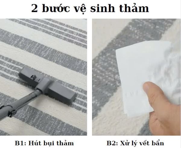 Hai bước quan trọng nhất bạn không nên bỏ qua là hút bụi kỹ bề mặt thảm và xử lý các vết bẩn cục bộ.