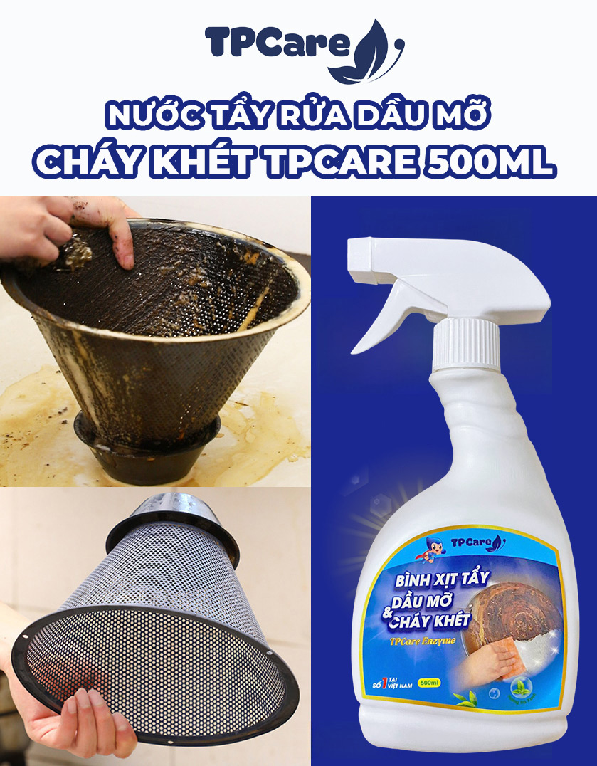 Để xử lý triệt để lớp mỡ “vàng đặc” bám lâu ngày trên máy hút mùi mà không làm trầy xước hay ăn mòn bề mặt kim loại, nước tẩy dầu mỡ cháy khét TPCare được xem là giải pháp tối ưu cho các gia đình hiện đại.