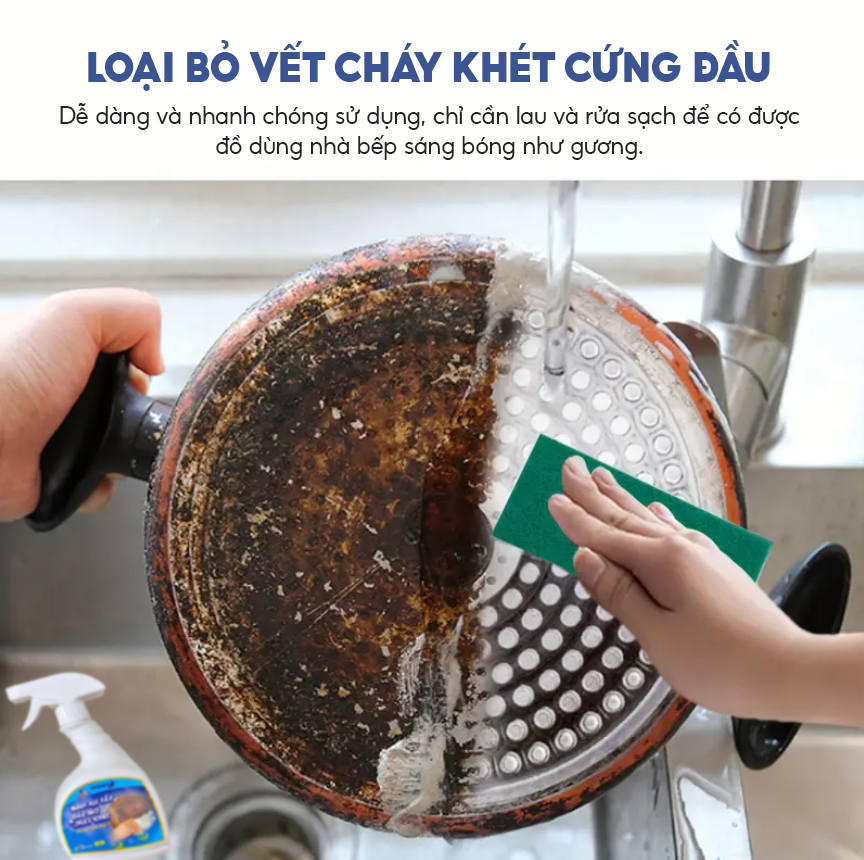 Nhà bếp vốn là không gian sinh hoạt chung, nơi giữ lửa cho cả gia đình. Tuy nhiên, các mảng cháy đen bám trên đáy nồi, bếp gas, bếp từ, tường bếp hay máy hút mùi khiến tổng thể căn bếp trở nên cũ kỹ, nhếch nhác, mất đi cảm giác sạch sẽ và gọn gàng.
