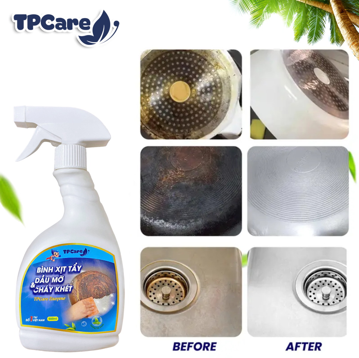 TPCare sẵn sàng đồng hành cùng bạn trong việc làm sạch căn bếp nhanh chóng, an toàn và hiệu quả. Lựa chọn TPCare ngay hôm nay để căn bếp luôn sạch sẽ, chảo nồi luôn sáng bóng và việc nấu nướng trở nên dễ dàng hơn bao giờ hết.