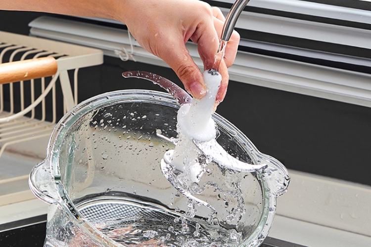 Lực xoáy mạnh mẽ sẽ giúp đánh bật các vụn thịt bám chặt trong khe lưỡi dao. Sau đó, bạn chỉ cần lấy lưỡi dao ra, dùng bàn chải nhỏ cọ nhẹ nhàng dưới vòi nước là mọi vết bẩn sẽ hoàn toàn biến mất.