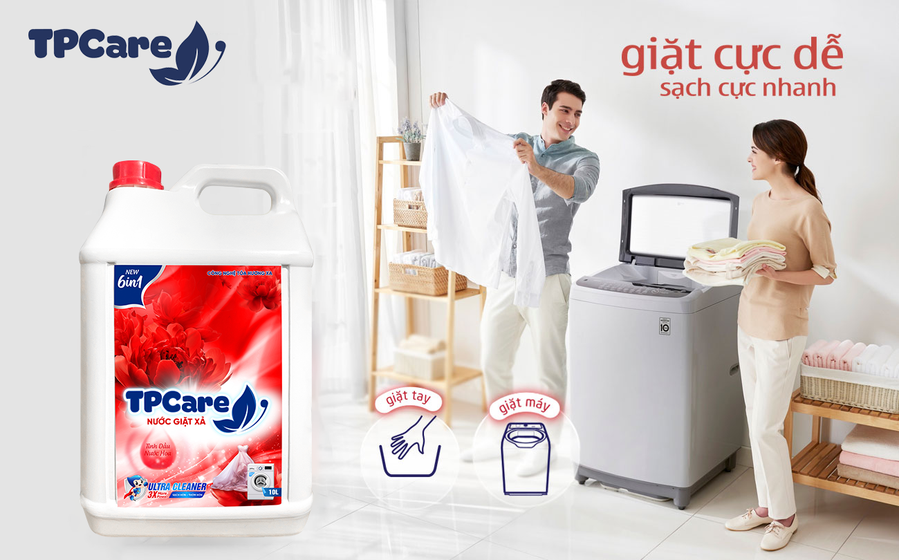 ên ưu tiên dùng các dung dịch tẩy rửa dịu nhẹ, an toàn, hoặc các sản phẩm có chiết xuất thiên nhiên như nước giặt xả TPCare giúp làm sạch hiệu quả mà không ảnh hưởng đến chất liệu đệm.