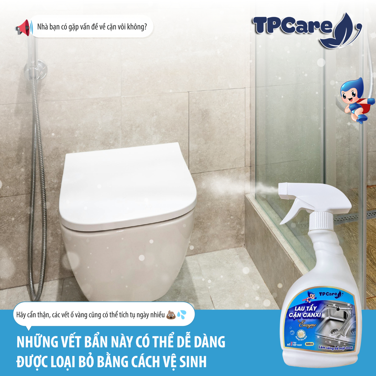 Một nhà tắm sạch bóng không chỉ bảo vệ sức khỏe cho cả gia đình mà còn giúp tâm trạng bạn thư thái hơn. Hãy để TPCare trở thành người đồng hành tận tâm, giúp việc chăm sóc ngôi nhà trở nên nhẹ nhàng và đầy cảm hứng mỗi ngày!