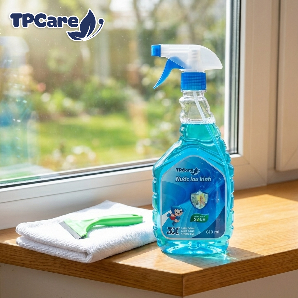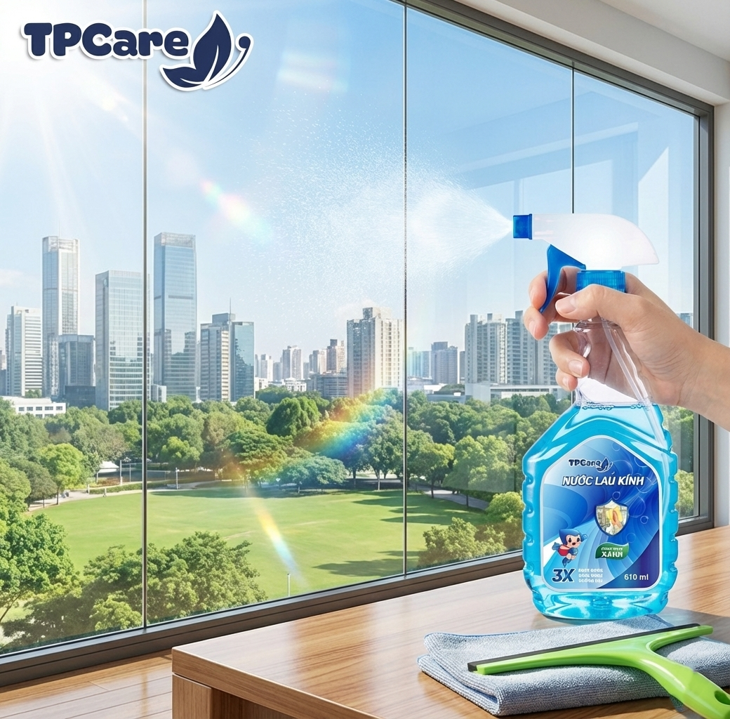Ứng dụng công nghệ xanh, nước lau kính TPCare đáp ứng đồng thời 3 tiêu chí quan trọng: sạch bong – sáng bóng – chống bám bụi, giúp bề mặt kính luôn trong suốt và hạn chế bụi quay trở lại. Nhờ đó, người dùng không cần lau dọn quá thường xuyên mà vẫn duy trì được không gian sạch đẹp.