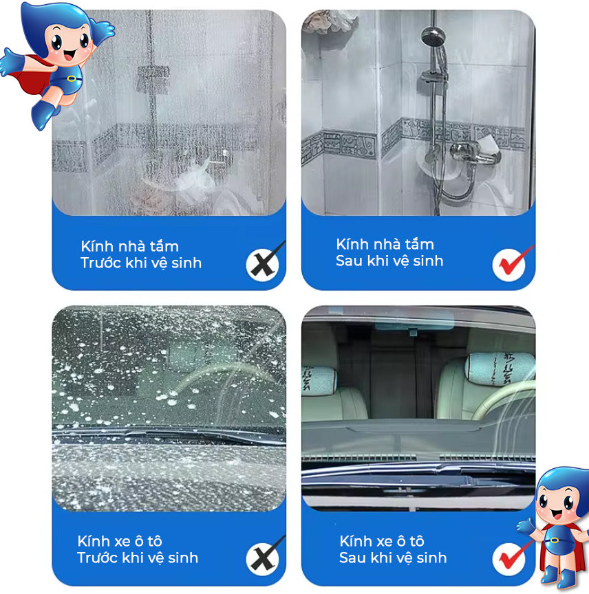 Đồng thời, sản phẩm còn giúp bề mặt kính khô nhanh, hạn chế tối đa tình trạng để lại vệt nước, mang lại độ trong suốt và sáng bóng rõ rệt.
