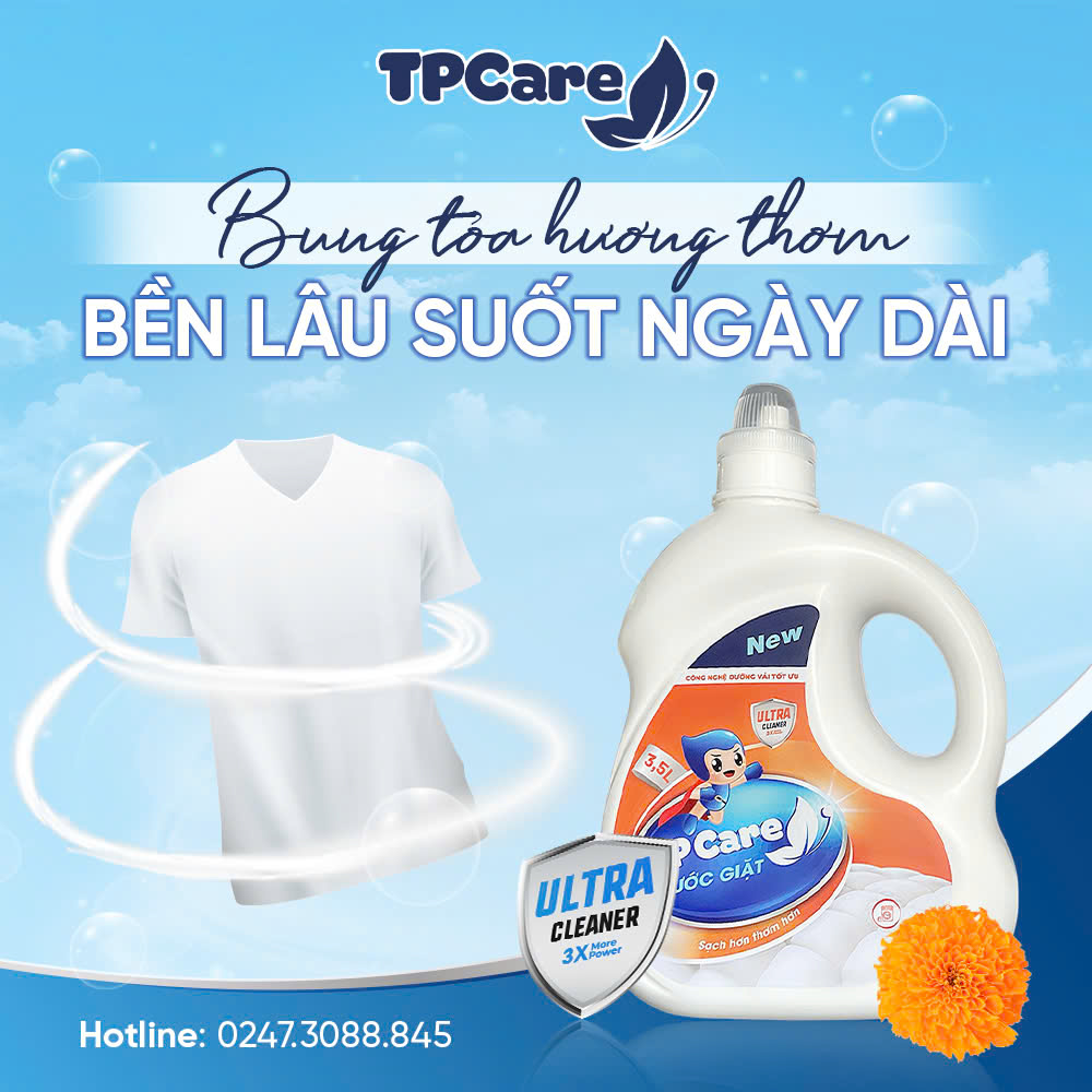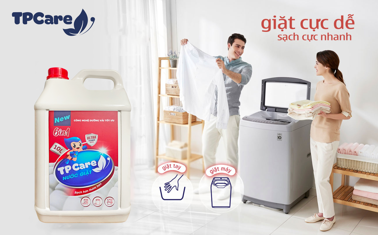 TPCare là thương hiệu đáp ứng tốt nhu cầu này, với sản phẩm nước giặt xả TPCare nổi bật nhờ công thức ưu việt, giúp quần áo sạch sẽ và bền màu, đồng thời tiết kiệm chi phí nhờ tích hợp cả hai công dụng trong một sản phẩm.