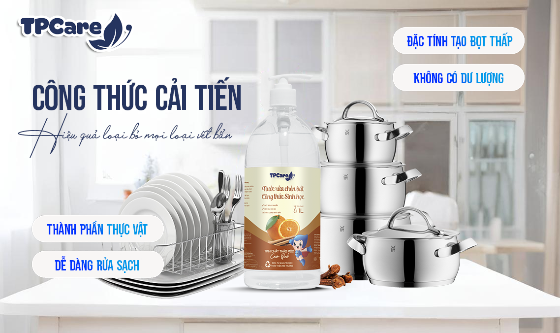 Nếu bạn đang tìm kiếm một sản phẩm hội tụ đầy đủ các giá trị khắt khe kể trên, nước rửa bát công nghệ sinh học TPCare chính là lựa chọn hàng đầu. Được thiết kế dành riêng cho gia đình hiện đại, TPCare không chỉ dừng lại ở hiệu quả làm sạch mà còn chú trọng tuyệt đối đến sự an toàn của người dùng và trách nhiệm với môi trường.