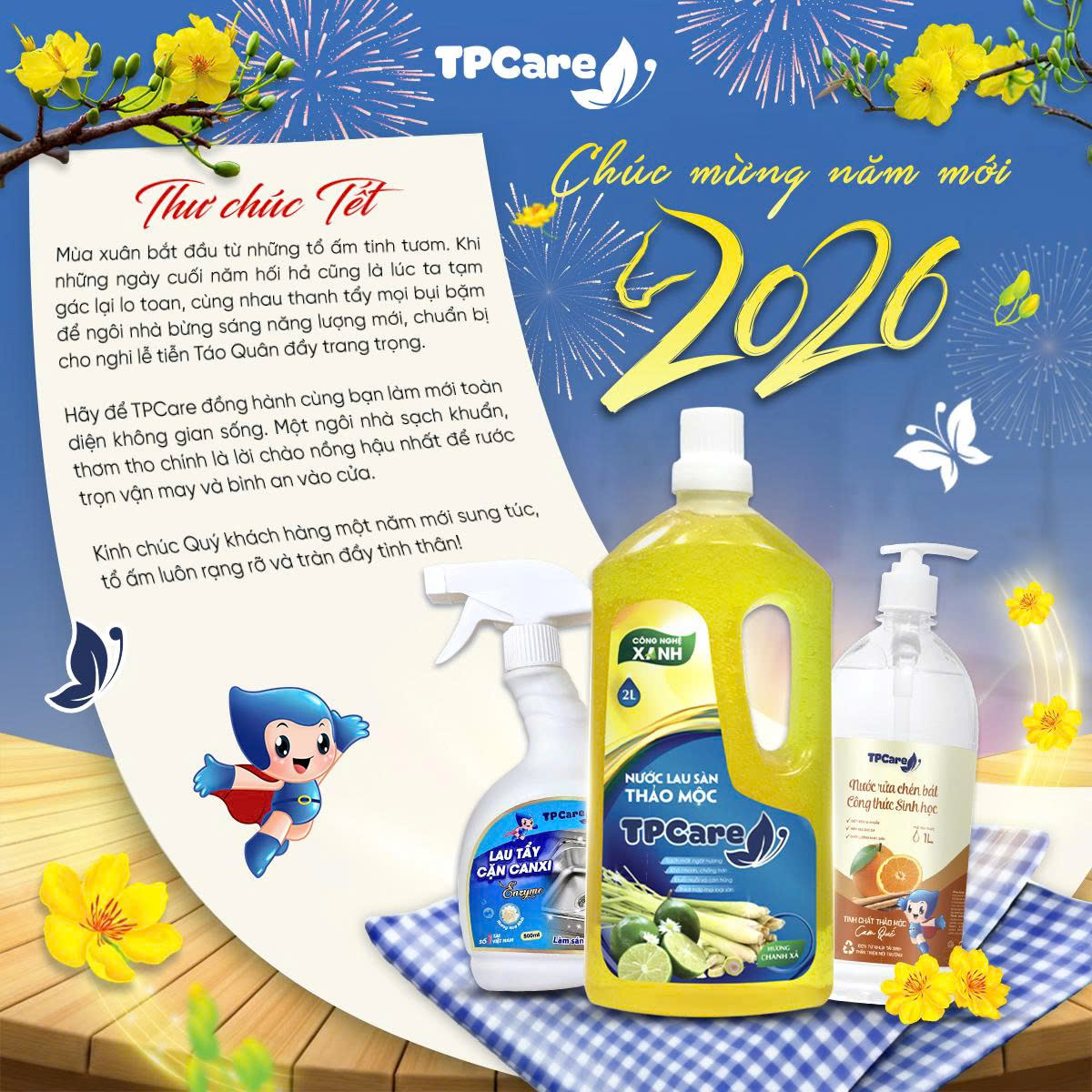 TPCare vô cùng tự hào và trân trọng khi được đồng hành cùng bạn trong việc làm mới toàn diện không gian sống. Chúng tôi tin rằng, một tổ ấm sạch sẽ, ngát hương thơm chính là nền tảng của sự bình an và là nơi khởi nguồn cho những niềm vui trọn vẹn trong năm mới.